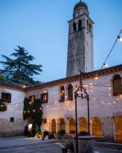 Il nostro ricevimento prenderà vita in un'atmosfera senza tempo, tra il fascino del Chiostro Romanico, l'eleganza del Refettorio affrescato e la magia del "Brolo", un meraviglioso giardino di due ettari cinto da mura seicentesche.